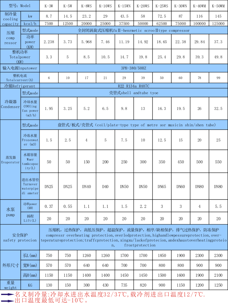 8.水冷及風(fēng)冷式規(guī)格齊全(功率:3HP-300HP,制冷量從600W至34800W)專門設(shè)有適合各行業(yè)機械設(shè)備配套之機型,可按客戶工藝要求制造。